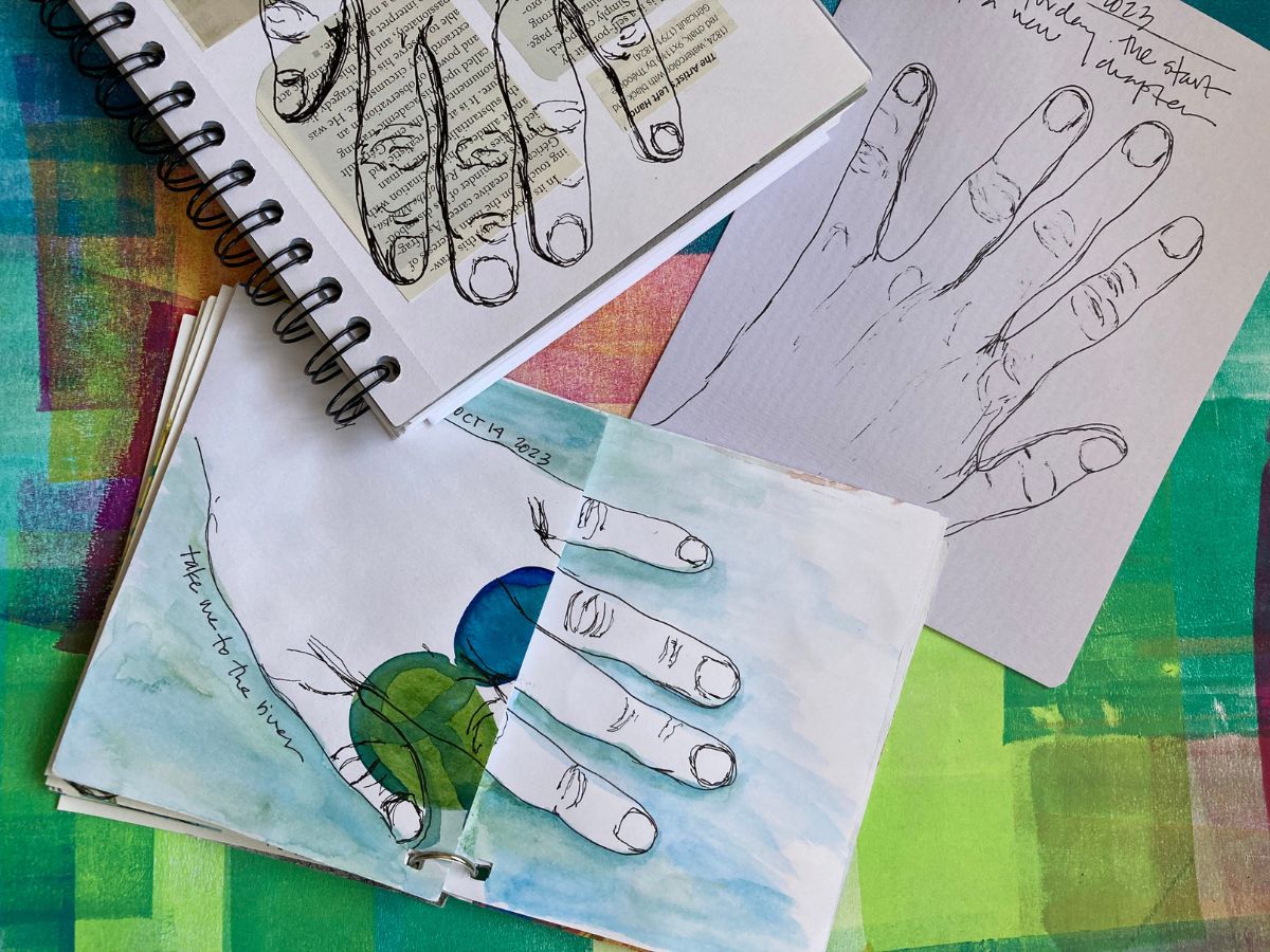 Tracing your hand is a way to ground you in the moment, connect you with your body and warm-up the drawing and sensing parts of your brain. You can do it in 5 minutes or let yourself loose track of time, adding details, color and shading.